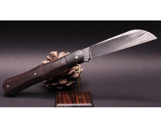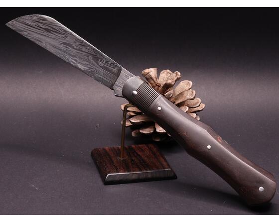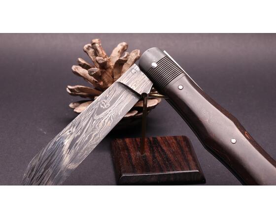 The violin knife is a traditional folding knife from the Jura, reimagined by Benjamin Mittay. Its slender, symmetrical shape, inspired by the body of a violin, combines elegance and functionality. Each piece is forged and handcrafted, reflecting authentic and refined artisanal craftsmanship.